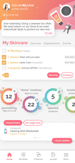 With FeelinMySkin mobile app we aim to assist skincare enthusiasts in the: