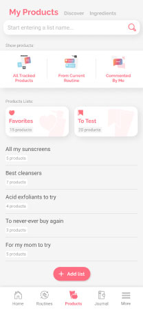 Explore products via our app - read structured reviews, see what others use in their routines, create and share product lists, mark products as favorites or add them to a wishlist.